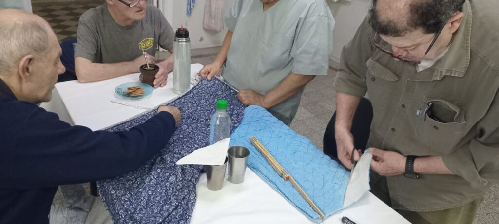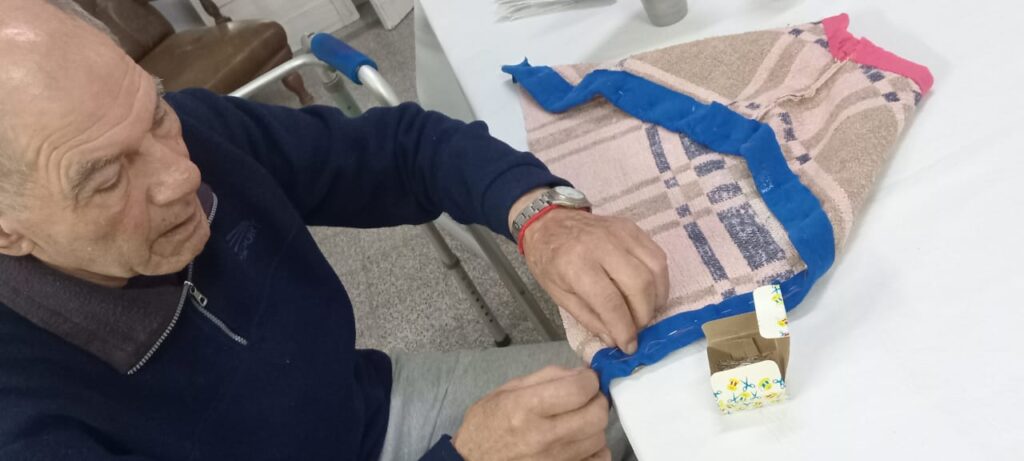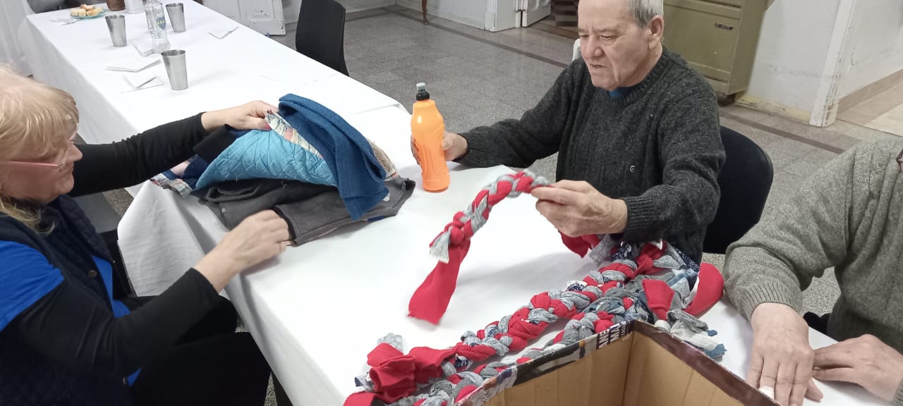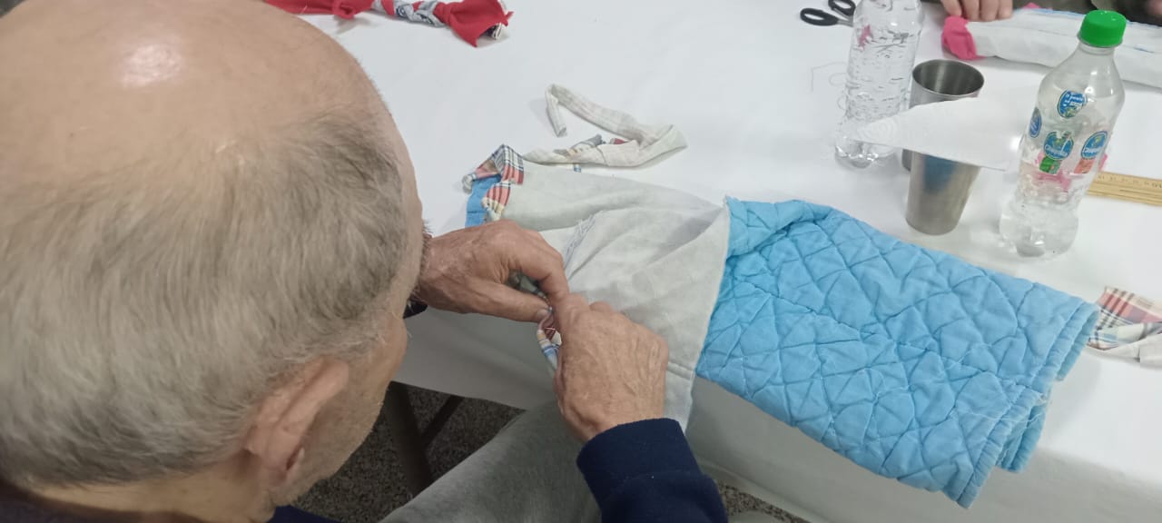 Esperando esta visita, luego de compartir un momento lleno de caricias y mimos con los animales, los abuelos junto a la Administradora Patricia Thomassen y al personal entregaron capas confeccionadas por ellos mismos, para cobijar a los perros en esta época del año.