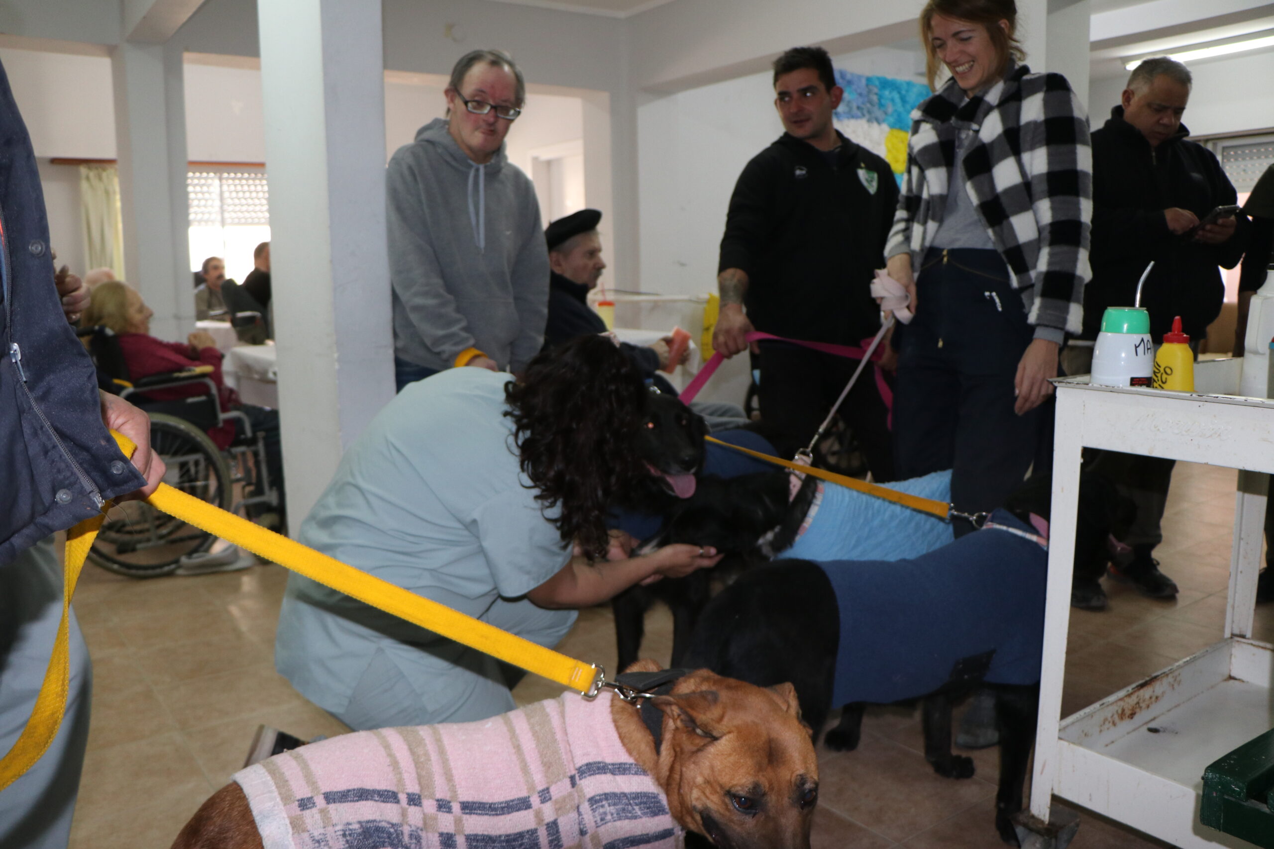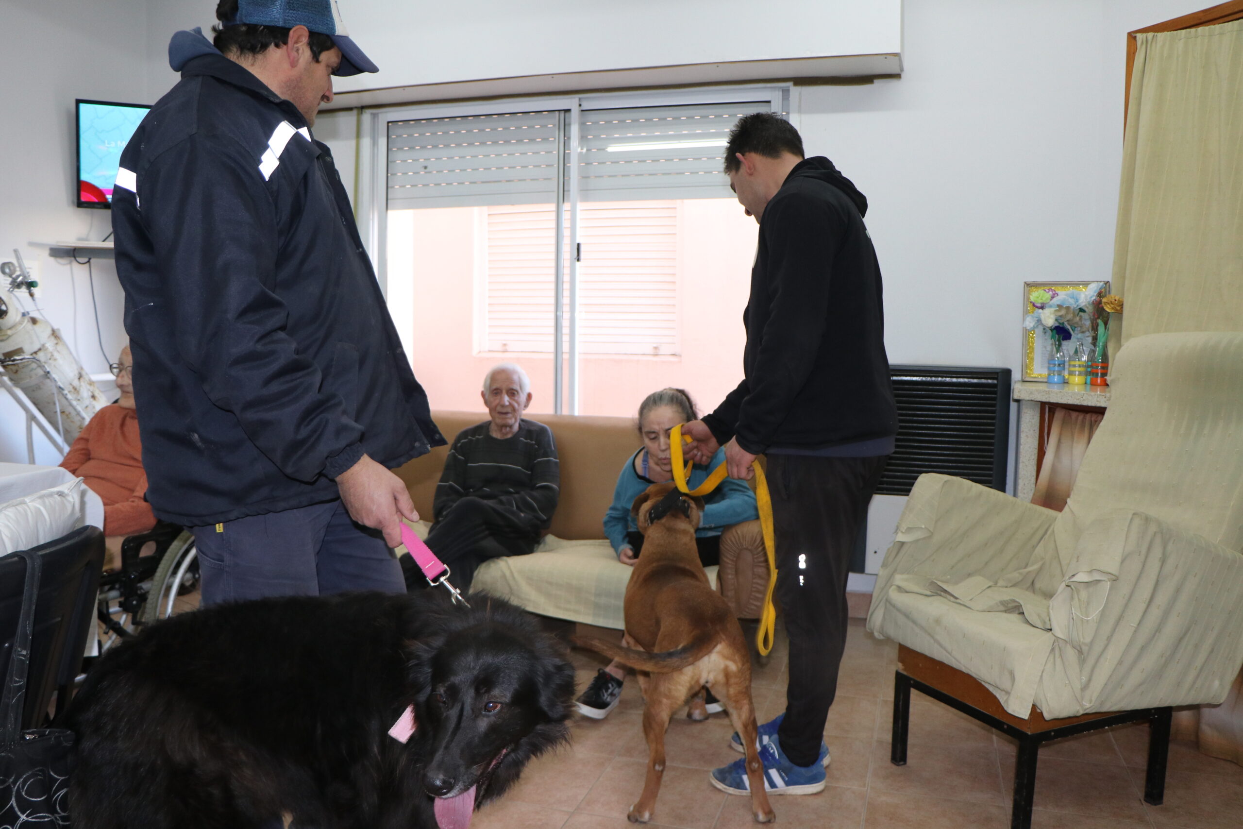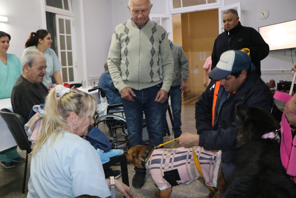 La felicidad de acariciar una mascota es una de las mejores terapias para mejorar el bienestar integral de los adultos mayores. En fechas especiales, y tomando los recaudos necesarios, perros de la Guardería Canina visitan las residencias municipales que albergan a los abuelos.