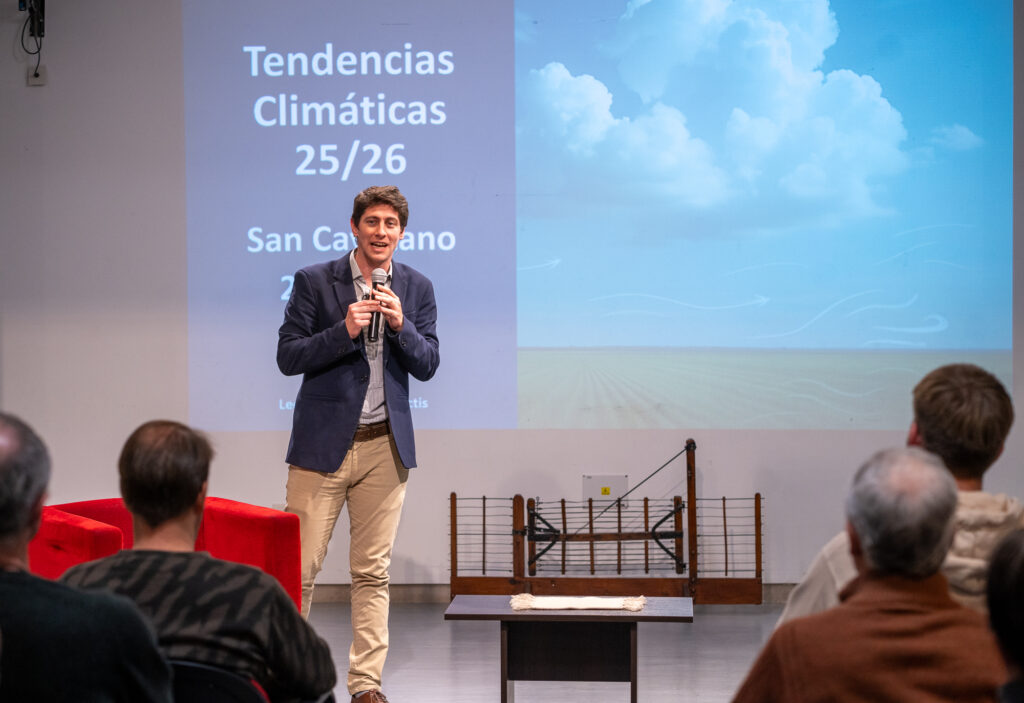 El especialista en clima Leonardo De Benedictis brindó una disertación de dos horas sobre las perspectivas climáticas para nuestro partido, aportando información fundamental para la planificación de la próxima campaña.
