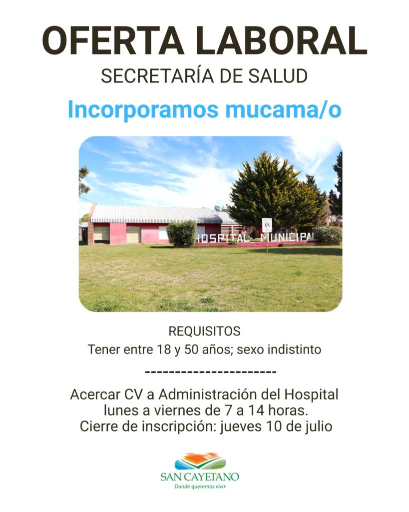 La Municipalidad local incorporará en el área de Salud personal para desempeñarse como mucama/o.