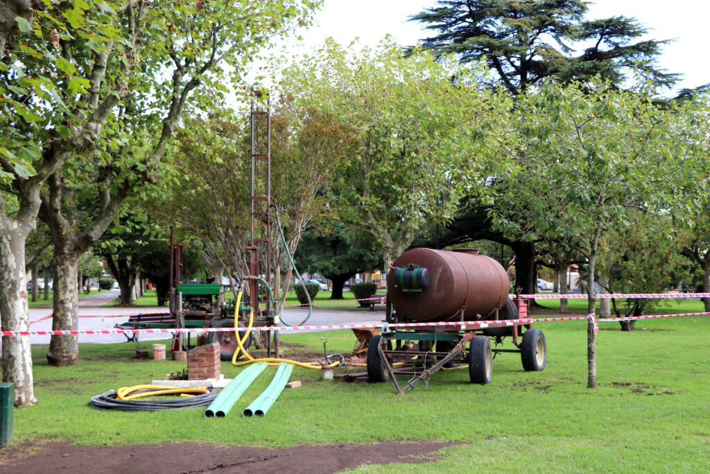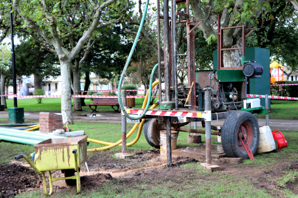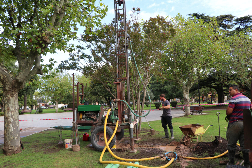 A efectos de optimizar las tareas de limpieza y riego en Plaza América, personal idóneo realizó una perforación para una futura colocación de una bomba sumergible.
