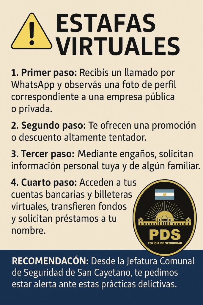 A los fines de evitar estafas, la Jefatura Comunal de Seguridad recomienda a la población: