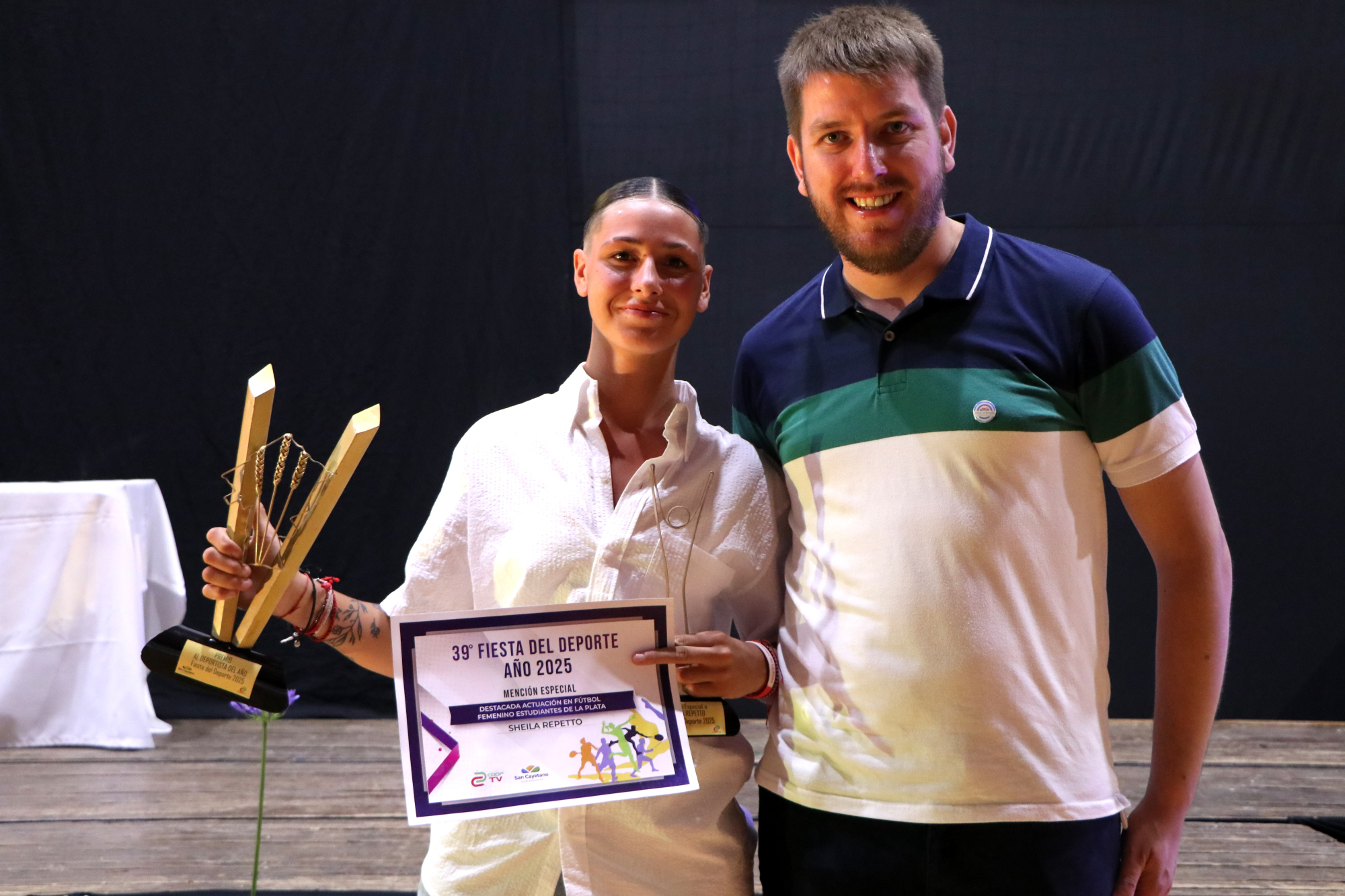 Se entregaron Menciones especiales a la Goleadora de fútbol femenino, Lara Drogo; Club Español por su 105 aniversario; “Negro el 8 Oeste” campeón anual de la Liga amateur de fútbol; Club de Pelota San Cayetano por la organización de torneos provinciales; la futbolista Sheila Repetto, por su participación en Estudiantes de La Plata; Santino Oronó, por su actuación en básquet representado a Bahiense del Norte; dupla Carrozzi – Isasmendi, palomar del año; Matías Pecker, dirigente nacional de fútbol senior; Sofía Martínez, destacadas actuaciones en triatlones nacionales e internacionales; Diego Ochandio, campeón nacional de aguas frías; Luis María Linch, campeón en torneo de duatlón; Noah Arán, campeón junior en interclubes de pesca; Municipalidad de San Cayetano por la organización del torneo provincial de atletismo, y CEF Nº 21 por su 50º aniversario.